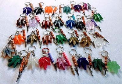Lot Of 6 Pot/Marijuana Leaf Keychains With Beaded Roach Clips
